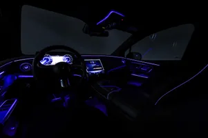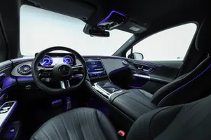 Design: Selenitgrå metallak, AMG eksteriør, AMG interiør, Nightpakke, 20" AMG letmetalfælge i 5-dobbelt eget design, Læder sort/spacegrey, Taghimmel sort, AMG multifunktionsrat i nappalæder med flad bund, Midterkonsol i sort-struktur, AMG bundmåtter, Interiørlister i antracitgrå lindetræ med linjestruktur, Mørktonede ruder bag i, Ambientebelysning Premium, Kølergrill med Mercedes-Benz mønster, Projektion af Mercedes-Benz stjerne fra sidespejle, Belyste trinlister med logo, Sikkerhed/miljø: PRE-SAFE, Tyveripakke PLUS, ISOFIX, Dæktryksovervågning, Bortslæbningsbeskyttelse, Knæairbag, Udvendig lydgenerator, TIREFIT, Ladekabel (5 meter) til wallbox og offentlig ladning.