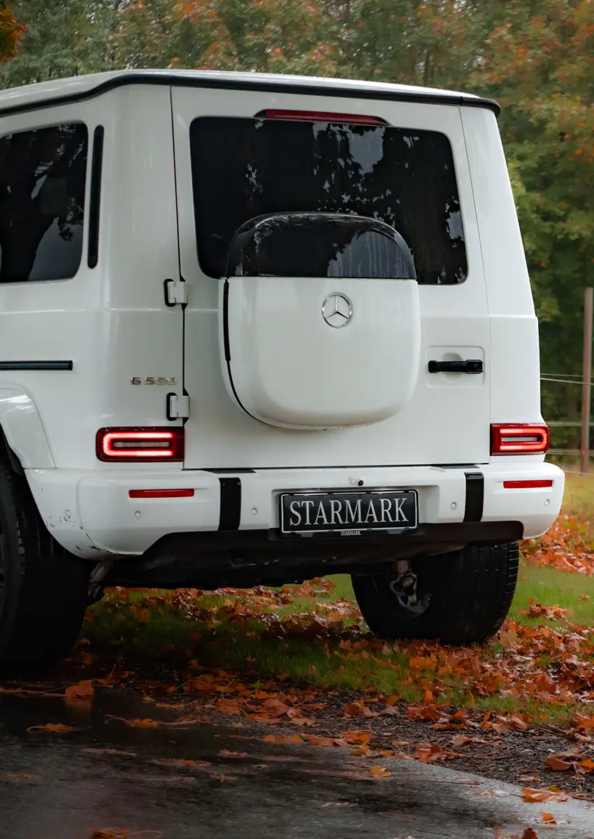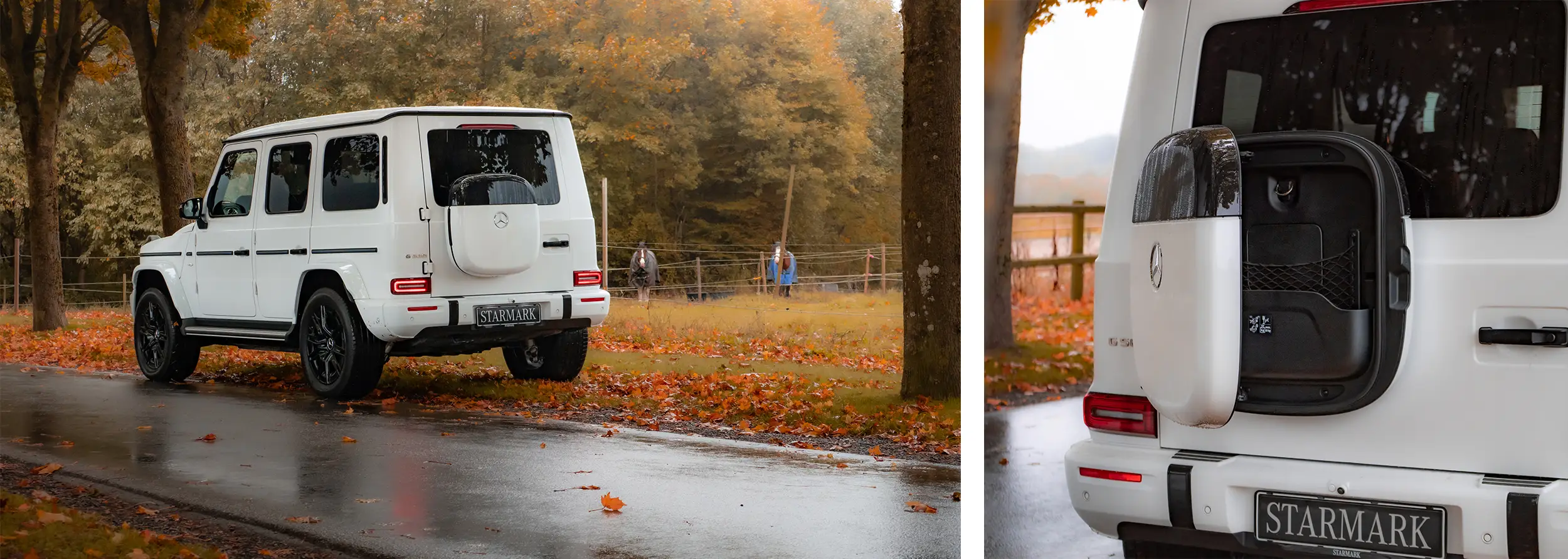 Det er i detaljerne, man kan spotte, at dette er den elektriske G-Klasse. Særligt bagpå, hvor den ellers ikoniske, runde kasse til reservehjulet nu er udskiftet med en kvadratisk kasse med afrundede hjørner – hvis funktion nu er, jep, du har nok gættet det: at opbevare bilens ladekabel. En sjov detalje.